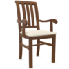 AMBASADOR chair, with armrest, slatted backrest, cream fabric, walnut finish, beechwood frame