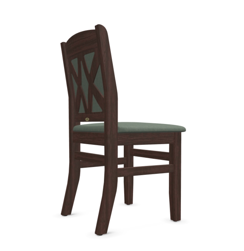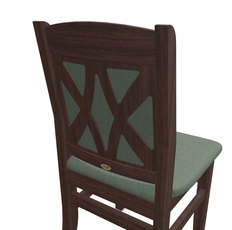 BULDOG chair, double X backrest, green velvet fabric, wenge brown finish, beechwood frame