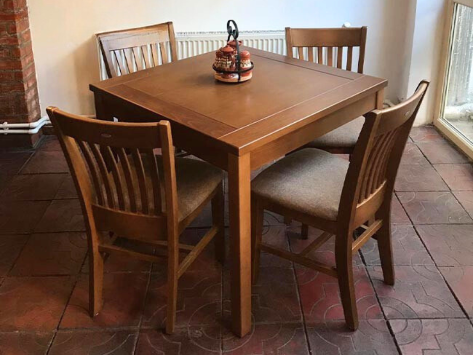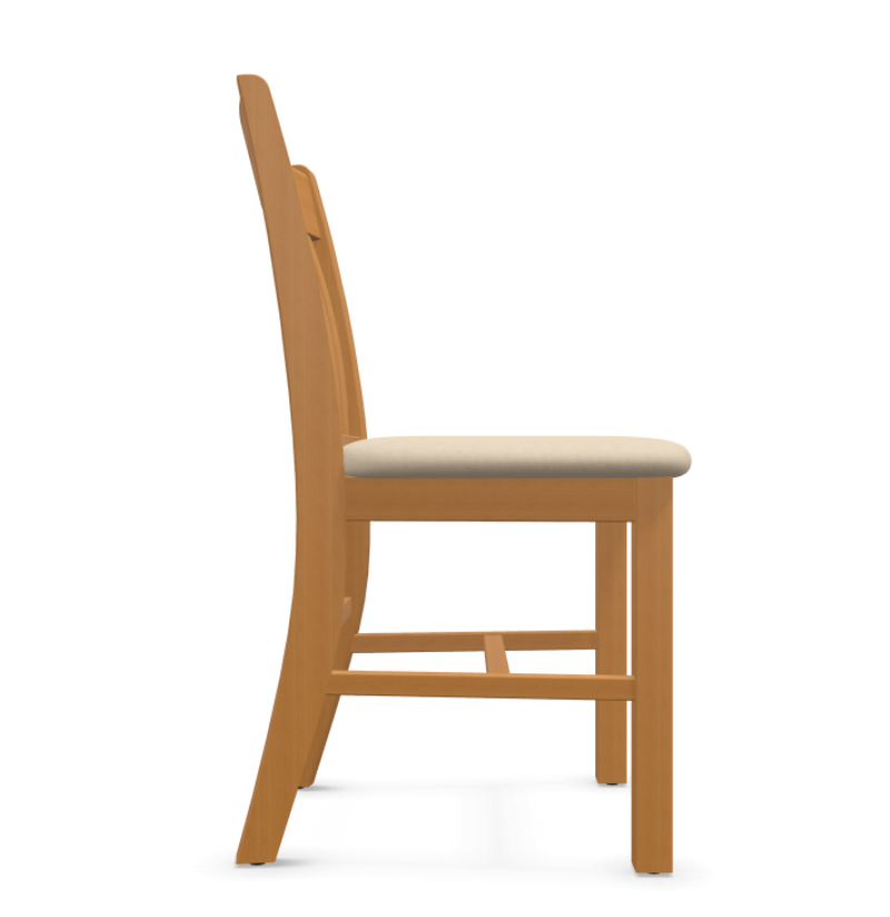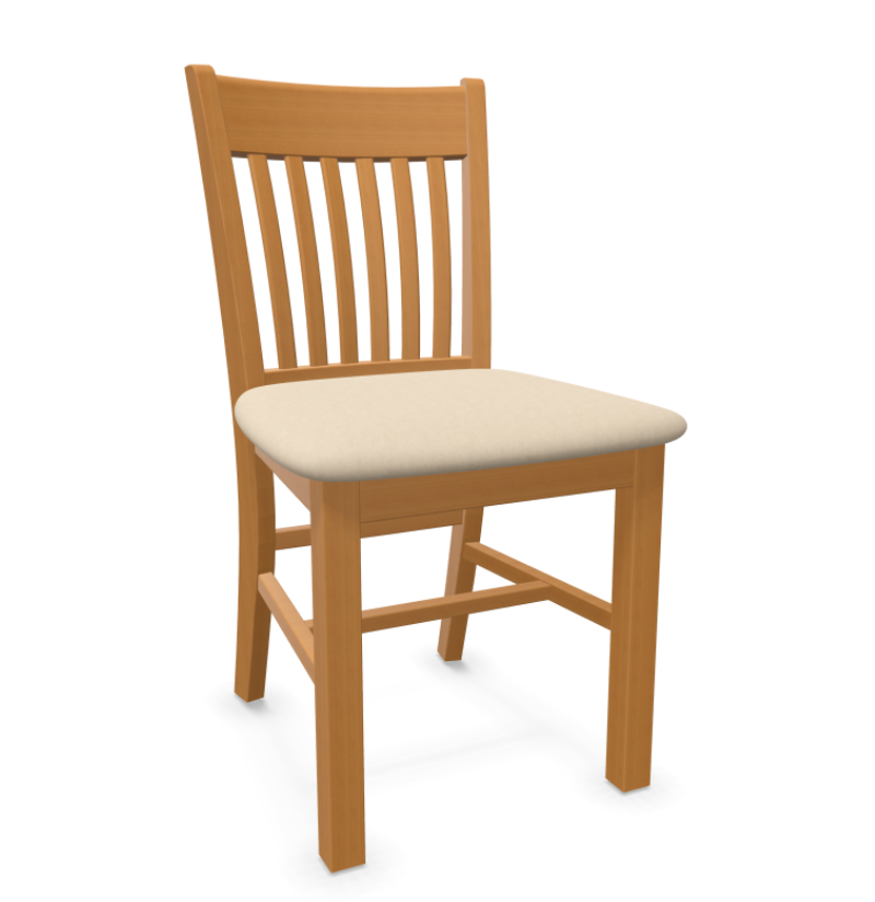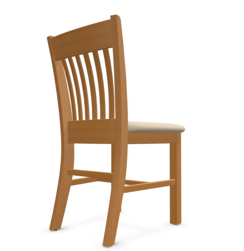 A classic and sturdy beechwood chair with a timeless slatted backrest and a comfortable upholstered seat.